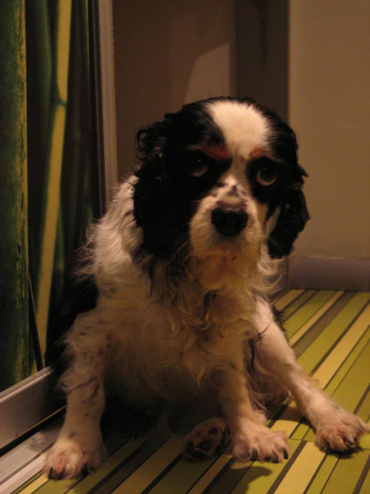Charlottka je extrémne plachá asi 4-5 ročná Cavalierka. Ma šelest na srdiečku 4 stupňa a miernu anémiu. V ušku mala silný hnisavý zápal, ktorý jej spôsobila zapichnutú osina. Tá jej bola odstránená a pri tej príležitosti (kedže musela byt v narkóze) jej boli aj vytrhnuté hnilé zúbky a vyčistený chrup. Nachádza sa momentalne u nás v dočasnej opatere a zatiaľ robí len veľmi maličké pokroky. Bála sa pohnúť z miesta, prve dni cele hodiny zostávala na mieste kde sme ju položili. Ešte stále v byte urobí len par krokov, ale uz aspoň vrtí na nás chvostíkom ostošesť a na vychádzkach sa to tiež trosku lepši 🙂 Bude potrebovať skúseného a trpezlivého človeka, ktorý má skúsenosti s plachými psíkmi a vie ako im vrátiť sebavedomie a dôveru v ľudí aj v samého seba.